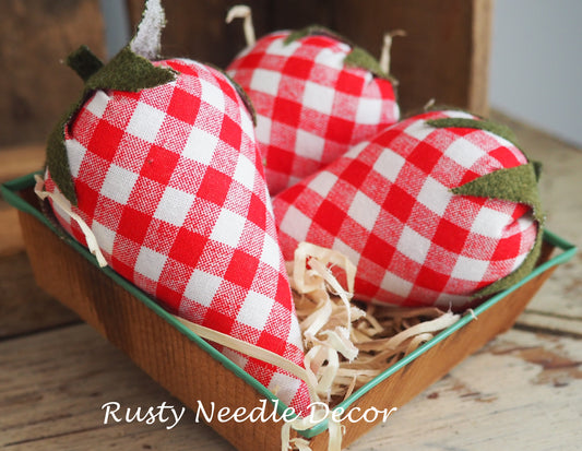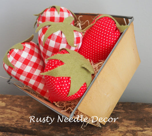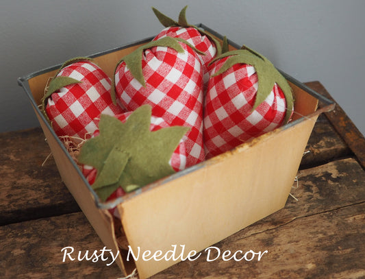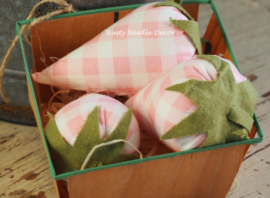 Vintage Strawberry Basket with 3 handmade strawberries