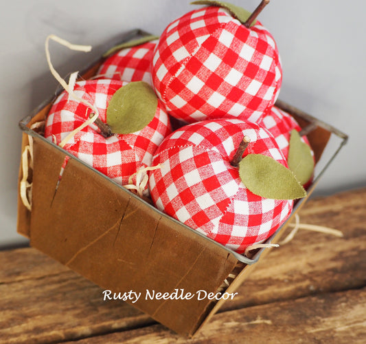 Vintage Wooden Fruit Basket with 5 Handmade Apples