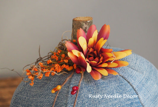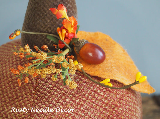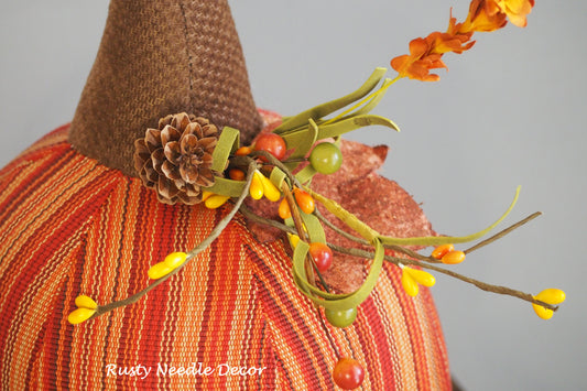Hand Made Stuffed Fall Autumn Decorated Pumpkin