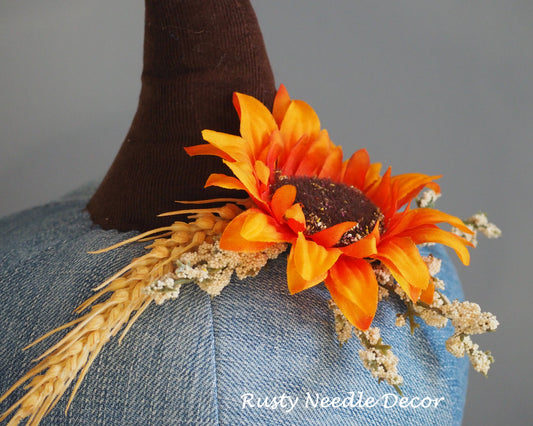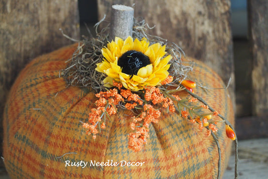 Hand Made Stuffed Fall Decorated Pumpkin